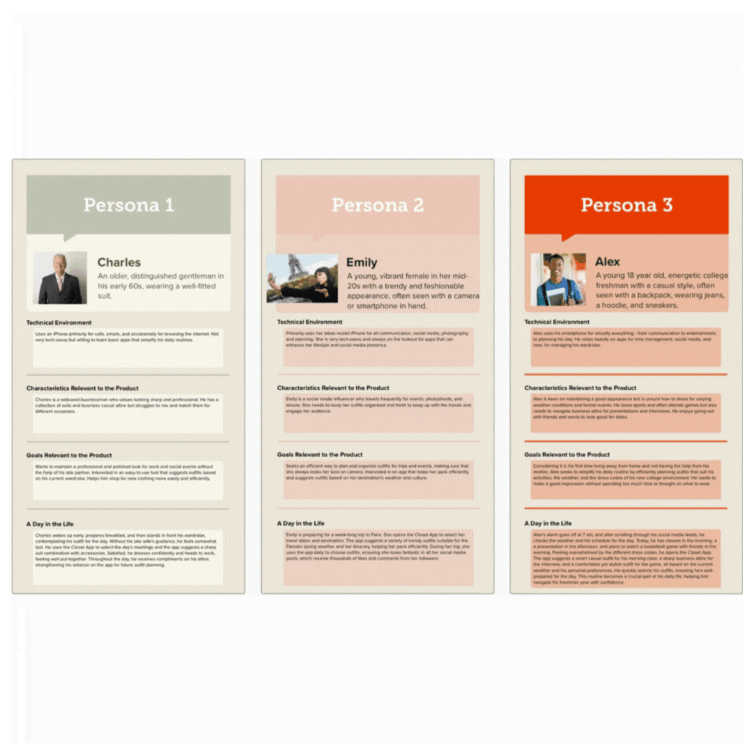 Important Traits: Fashion-forward, busy lifestyles, tech-savvy, values personalization, enjoys using apps for organization and self-expression. Includes influencers, professionals, travelers, and anyone looking to simplify their wardrobe and enhance their personal style.