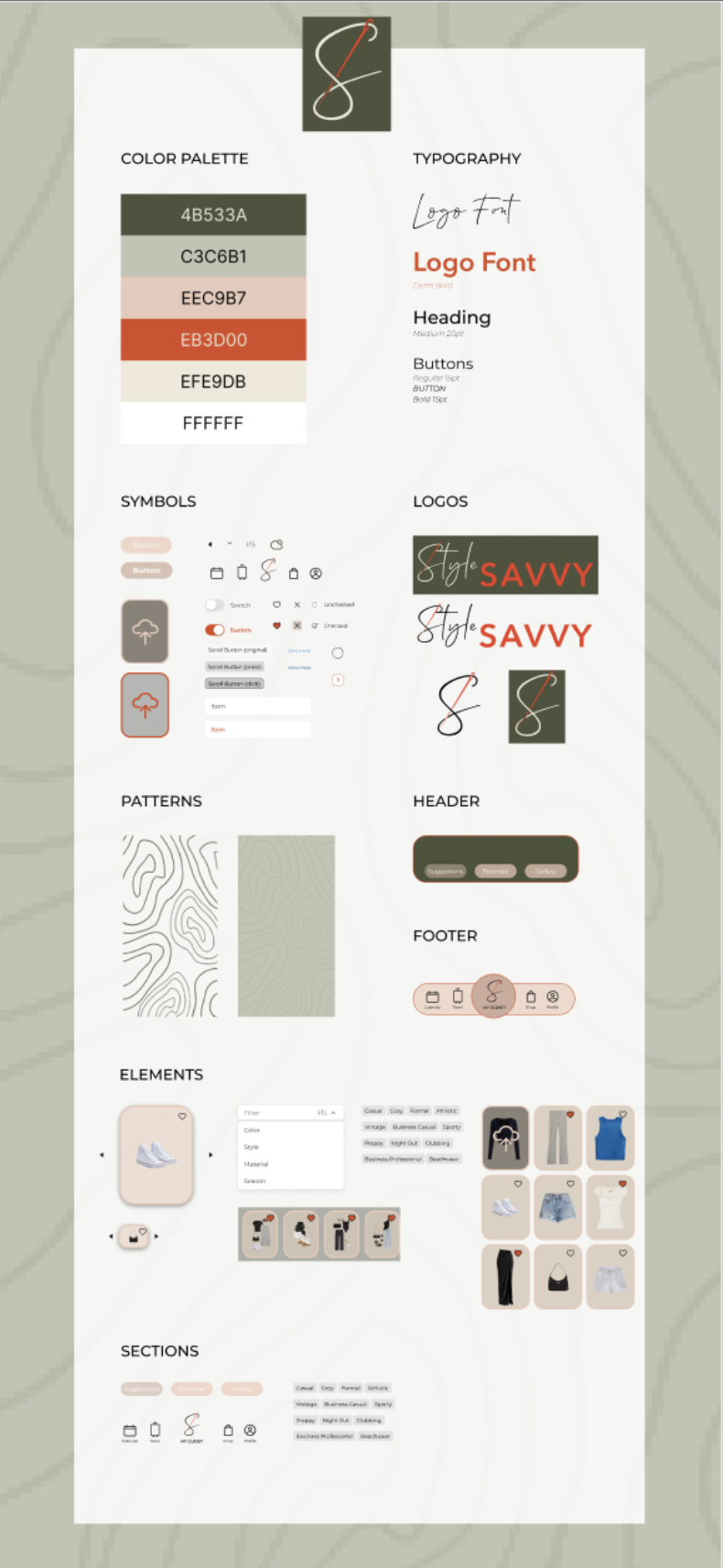 For the logo, I wanted to avoid cliché symbols like hangers and focused on more original fashion-related elements. I explored Pinterest for inspiration, sketched out ideas, and brought them into Illustrator—eventually landing on the needle concept as the perfect visual identity for Style Savvy.